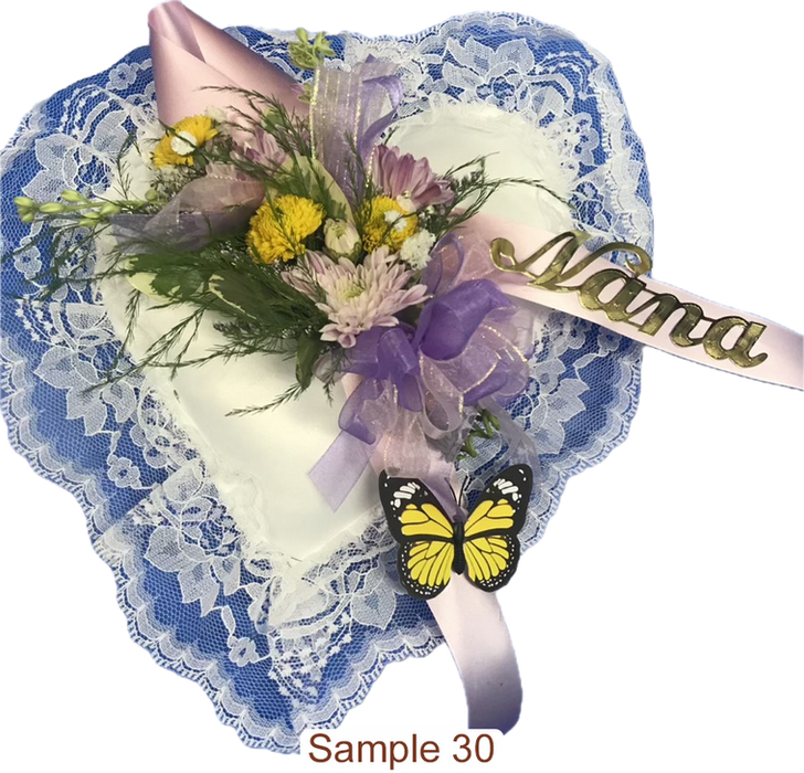 Our pillows come in square, heart, or cross shapes, priced at $45.00 each. These petite arrangements serve as a tender expression of sympathy, offering comfort and consolation to those in mourning. Each pillow arrangement is customizable, allowing you to select the flowers, colors, and shapes that resonate with your loved one's memory.